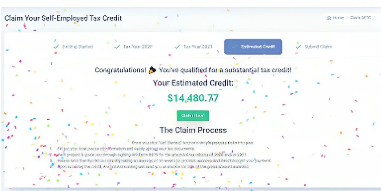 Contact us now and we will explain the details and set you up to file for your Self-Employed Tax Credit . This program goes away on April 15, 2024 so we only have a few months left to apply.